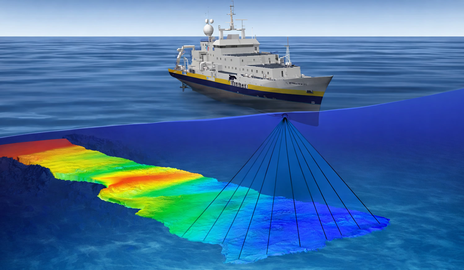 O levantamento batimétrico com Multibeam permite mapear o fundo do mar com alta resolução, gerando modelos digitais detalhados da topografia submarina.